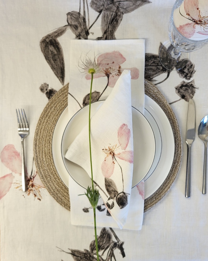 Nicola’s napkin collection, meticulously crafted from high-quality Organic Irish Linen, offers a delightful addition to any table setting. Each napkin embodies her unique design aesthetic and attention to detail, providing both functionality and elegance for your dining experience.