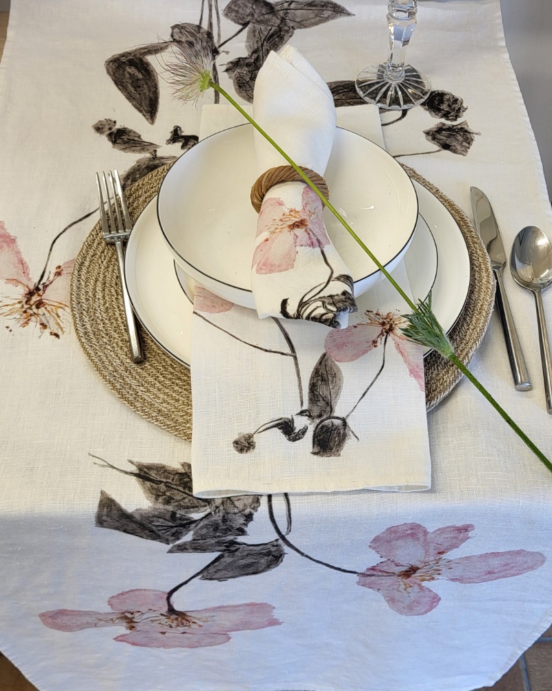Hand-finished linen table runners designed to complement both everyday meals and special occasions.