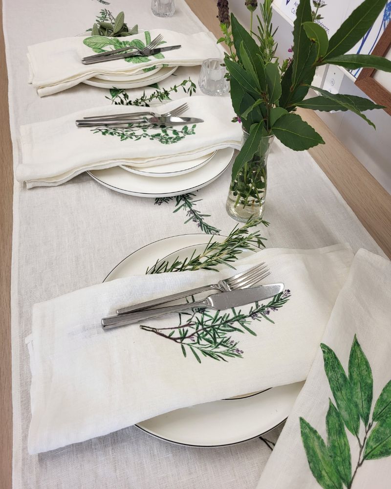 Hand-finished linen table runners designed to complement both everyday meals and special occasions.