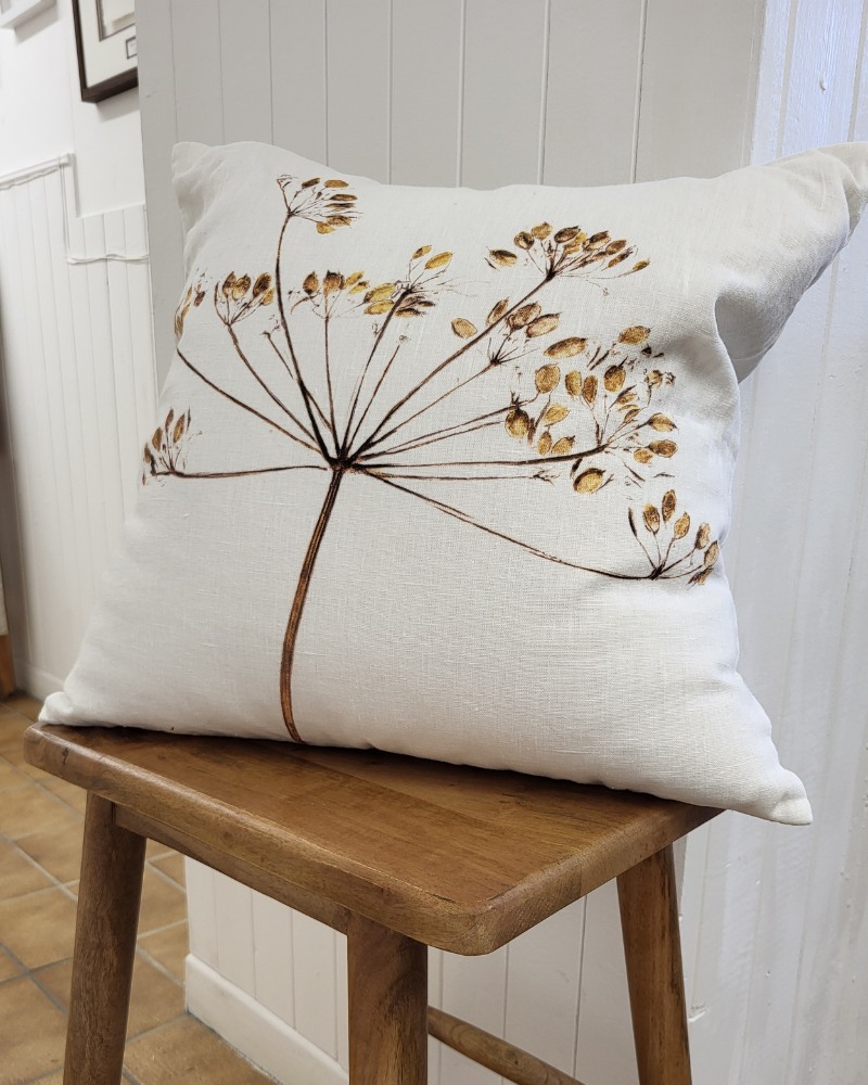 Nicola’s botanical pillow collection, crafted from 100% Organic Irish Linen, showcases her intricate and expressive artistry. Each piece captures botanical motifs in a unique and captivating manner, accentuated by deep textures for a truly remarkable aesthetic.