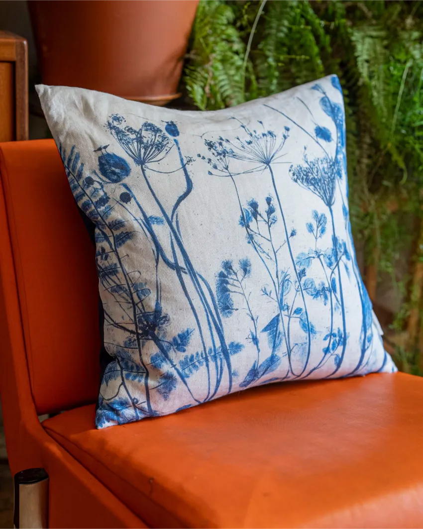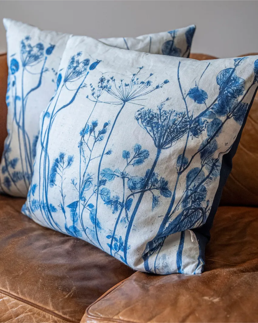 Nicola’s botanical pillow collection, crafted from 100% Organic Irish Linen, showcases her intricate and expressive artistry. Each piece captures botanical motifs in a unique and captivating manner, accentuated by deep textures for a truly remarkable aesthetic.