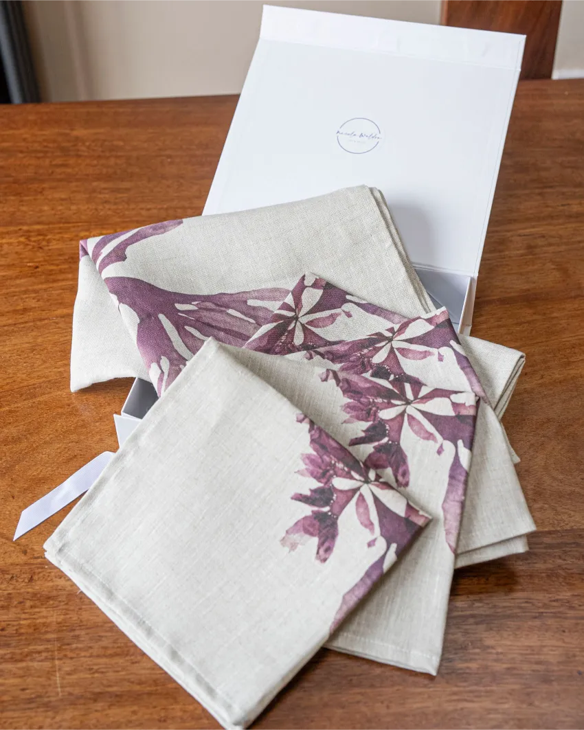 Nicola’s napkin collection, meticulously crafted from high-quality Organic Irish Linen, offers a delightful addition to any table setting. Each napkin embodies her unique design aesthetic and attention to detail, providing both functionality and elegance for your dining experience.